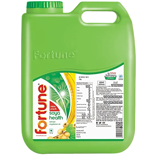 Fortune Soya Health Refined Soyabean Oil 15L Jar is a premium bulk refined soybean oil using advanced H.A.R.T. technology for neutral taste and high stability, ideal for restaurants, hostels, and large household cooking.