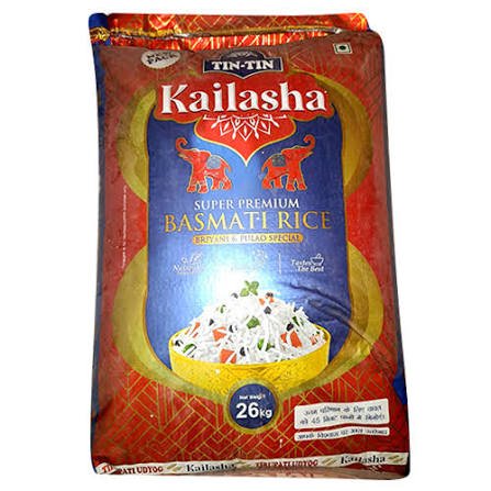 Kailasa Super Premium Basmati Rice 26kg ek high-quality long grain basmati chawal hai jo premium aroma aur fluffy texture ke liye jaana jaata hai. Yeh cooking mein non-sticky grains deta hai, biryani, pulao ya daily dal-chawal ke liye perfect Bihar market mein popular brand hai.​