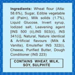 Whole Wheat Flour (Atta), Cow’s Milk Solids, Sugar, Edible Vegetable Oil, Raising Agents, S