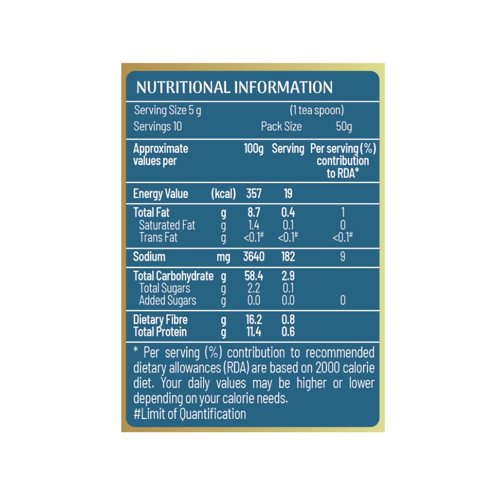 Coriander, Red Chilli, Dry Mango Powder, Iodised Salt, Black Pepper, Tomato Powder, Cumin Seed, Cloves, Fennel, Turmeric, Nutmeg, Garlic, Black Cardamom, Star Anise, Dry Ginger, Acidity Regulator(Ins-330), Fenugreek Leaves, Paprika, Green Cardamom.